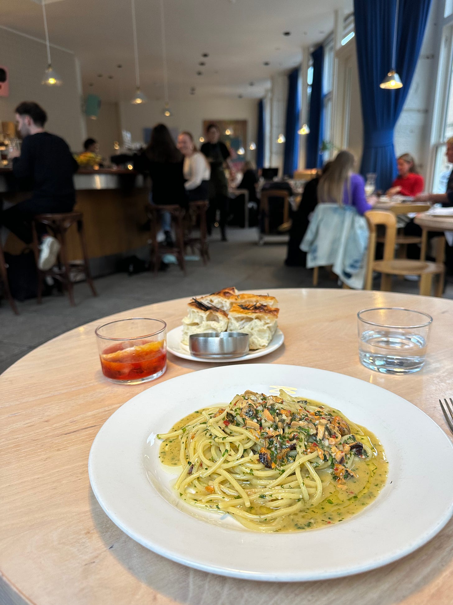 On my first day at Gloriosa, Jordan, the head chef, showed me how to make their famed focaccia. Ella made me a coffee. At 4pm, when work ended, Jordan made me a plate of squid tonarelli after I had told him about the seafood version that still haunted my dreams. On my last day, Jordan made me a plate of mussel tonarelli when my shift ended, and I sat on the barstools, chatting with one of the many cool, hip servers and learning about the indie porn magazine that he’s making.